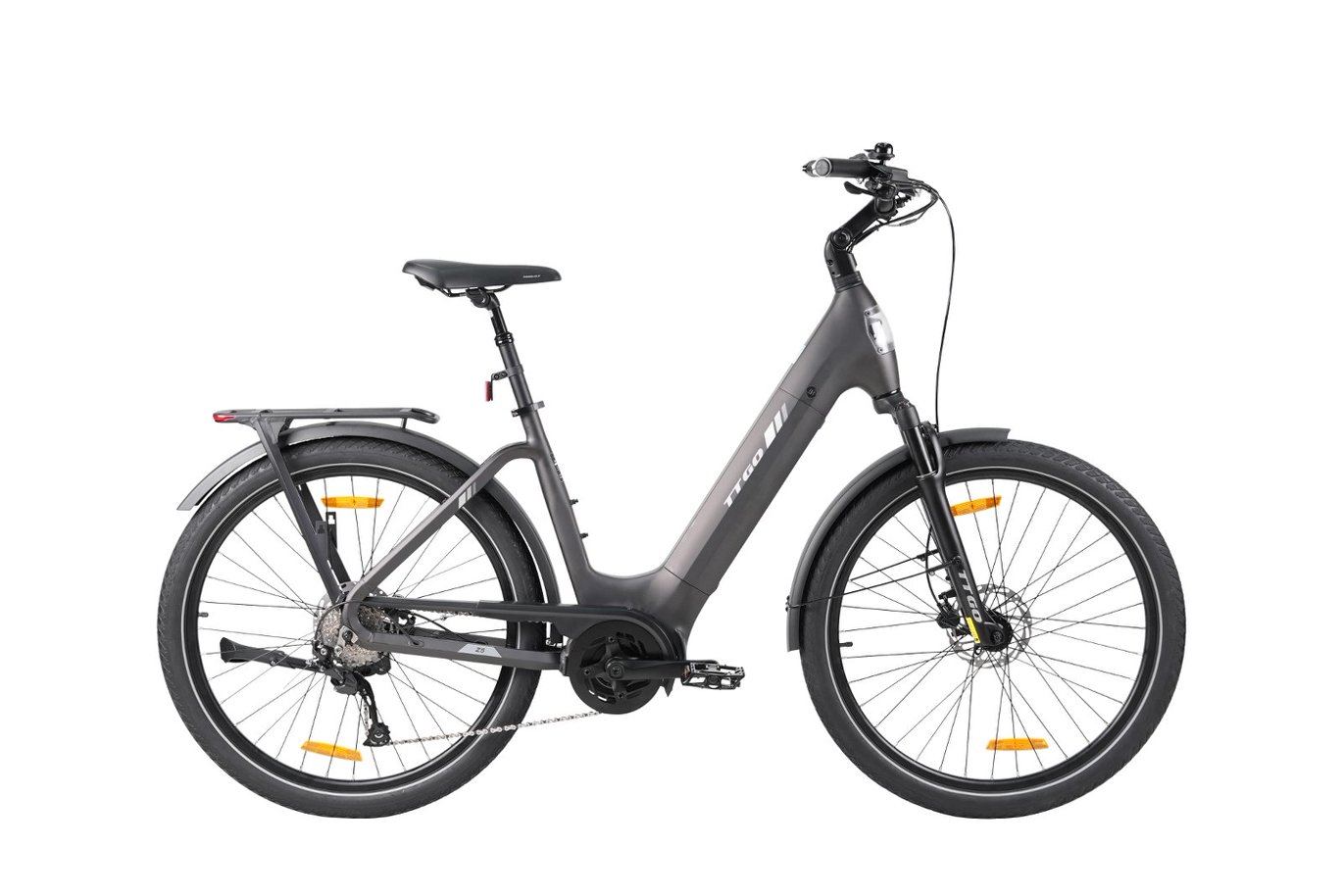 Akumulator litowo-jonowy o pojemności 648 Wh został umieszczony w ramie z dostępem od boku, co ułatwia jego wyjmowanie i ładowanie. Taka konstrukcja poprawia rozkład masy oraz stabilność prowadzenia. Zasięg na poziomie 110–130 km sprawia, że rower elektryczny TTGO Z5 doskonale sprawdzi się na dłuższych trasach.